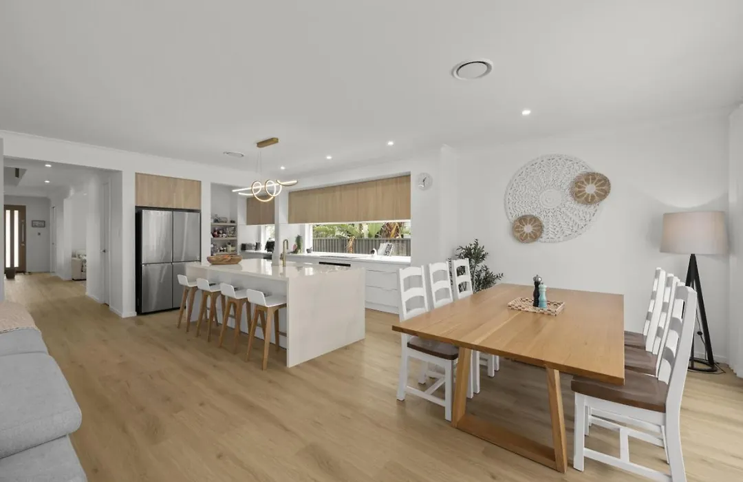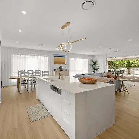The holiday home features an oven and a dishwasher provided in a fully-fitted kitchen. Guests can enjoy Australian dishes in Lakeview, located 1.5 km from Burleigh Waters Pool House Villa.